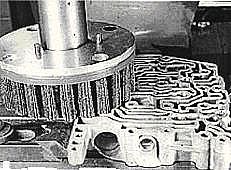 (1) 变速器:用盘刷清理阀体端面毛刺和锐边,用孔刷清理阀体孔毛刺和锐边。